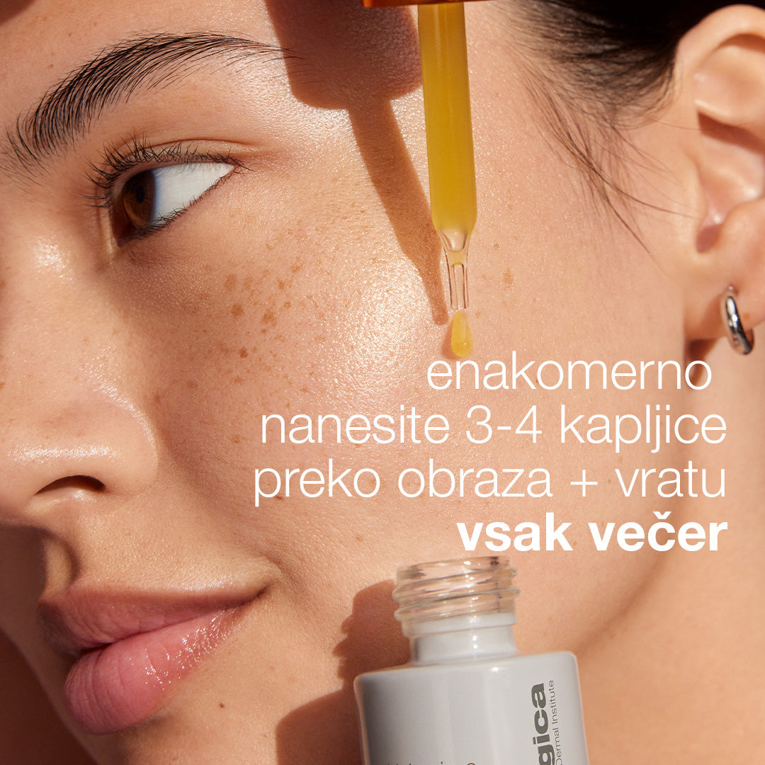 Biolumin-C Night Restore serum, ki deluje čez noč, povrne koži sijaj, navlaženost in tonus.