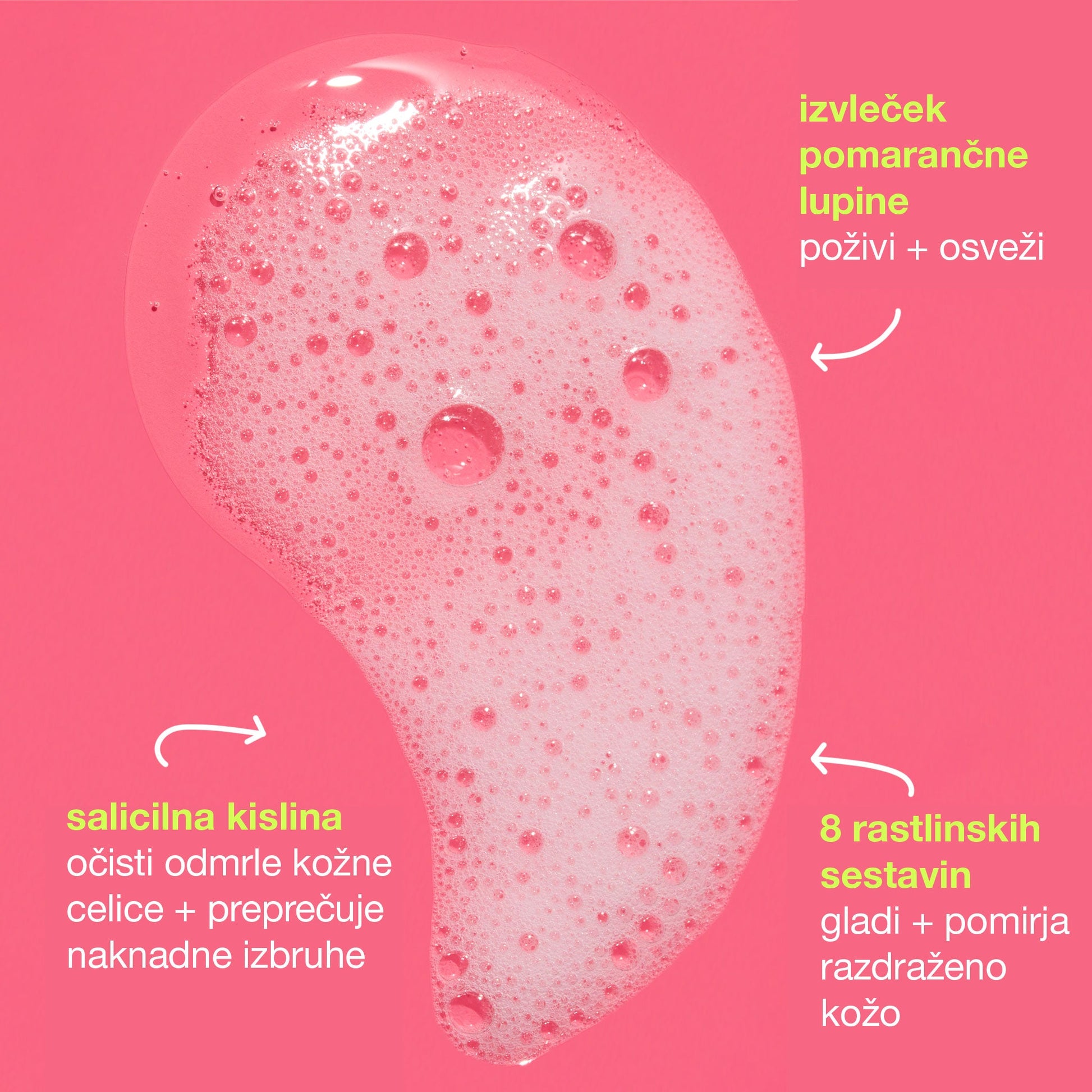 Peneči čistilni gel globinsko očisti kožo, odstrani odmrle kožne celice, da prepreči izbruhe, očisti umazanijo in odvečno maščobo, ki maši pore in povzroča izbruhe. Nežna formula, ki ne lušči je varna za vsakodnevno uporabo, zjutraj in zvečer. Prav tako se lahko uporablja za čiščenje vratu, po prsih, hrbtu...povsod, kje koža potrebuje globinsko čiščenje por, da se preprečijo izbruhi.