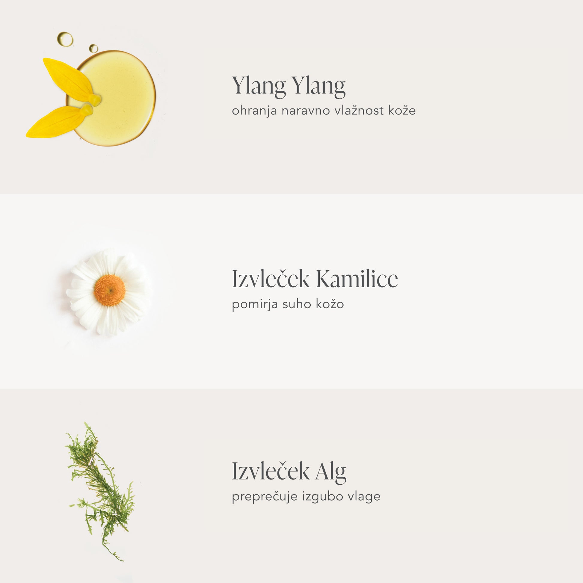 - Vlažilni sprej z Ylang ylangom, ki hidrira in “napolni” celice.