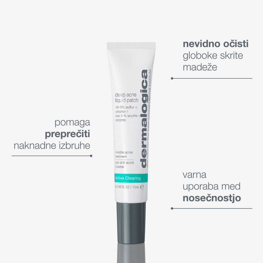 Nevidna prekrivnost madežev na osnovi žvepla se spremeni iz tekočine v obliž, da pomiri, očisti in prepreči izbruhe aken. Nanesite takoj, ko začutite, da nastaja madež in pomagajte ustaviti izbruhe, še preden jih vidite. Film, ki posnema kožo, tvori polprepusten obliž, ki omogoča pretok zraka, hkrati pa ščiti kožo pred onesnaženjem in dražilnimi snovmi. Kafra zagotavlja hladilni občutek. 5 % koloidnega žvepla pomaga v boju proti izbruhom za hitro čiščenje kože. 4 % niacinamida pomaga pomiriti kožo in zbledi sledi po izbruhih.