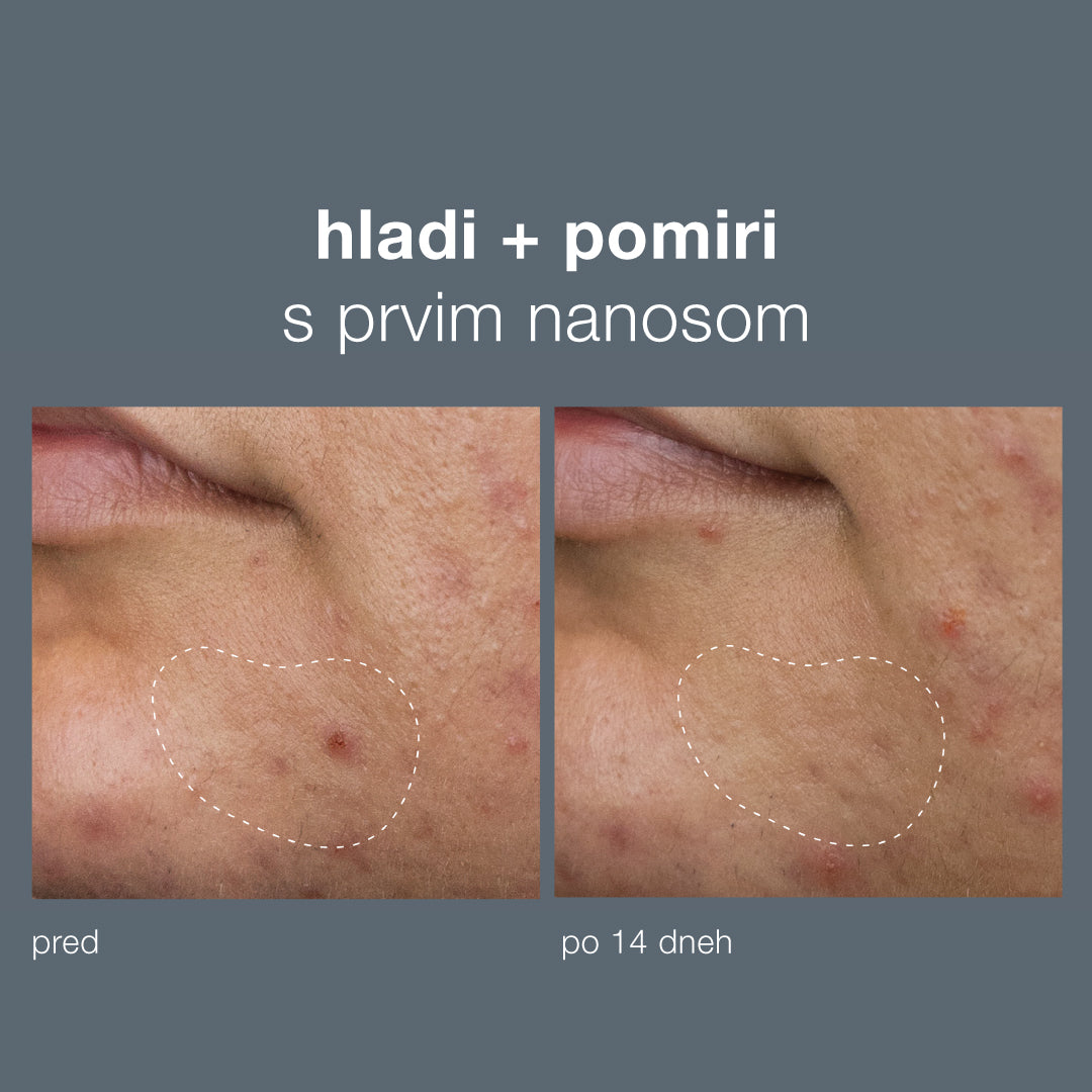 - pomirja razdraženo kožo zaradi izbruhov in preprečuje nadaljne izbruhe