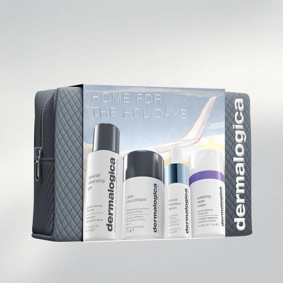 Kamor koli se boste odpravili v tem prazničnem času, s seboj prinesite svoj ritual nege kože. Ta komplet, pripravljen za uporabo, vsebuje 4 bistvene izdelke v potovalni velikosti. Očistite kožo z našim nežnim čistilnim penjenjem in razkrijte bolj gladko in svetlejšo kožo z našim pilingom v prahu št. 1.* Nato ji nanesite dolgotrajno hidratacijo in vlago, ki obnavlja kožno pregrado – idealno za zimsko kožo. Ko se pripravljate na naslednjo destinacijo, vse skupaj zložite v priloženo potovalno torbo.