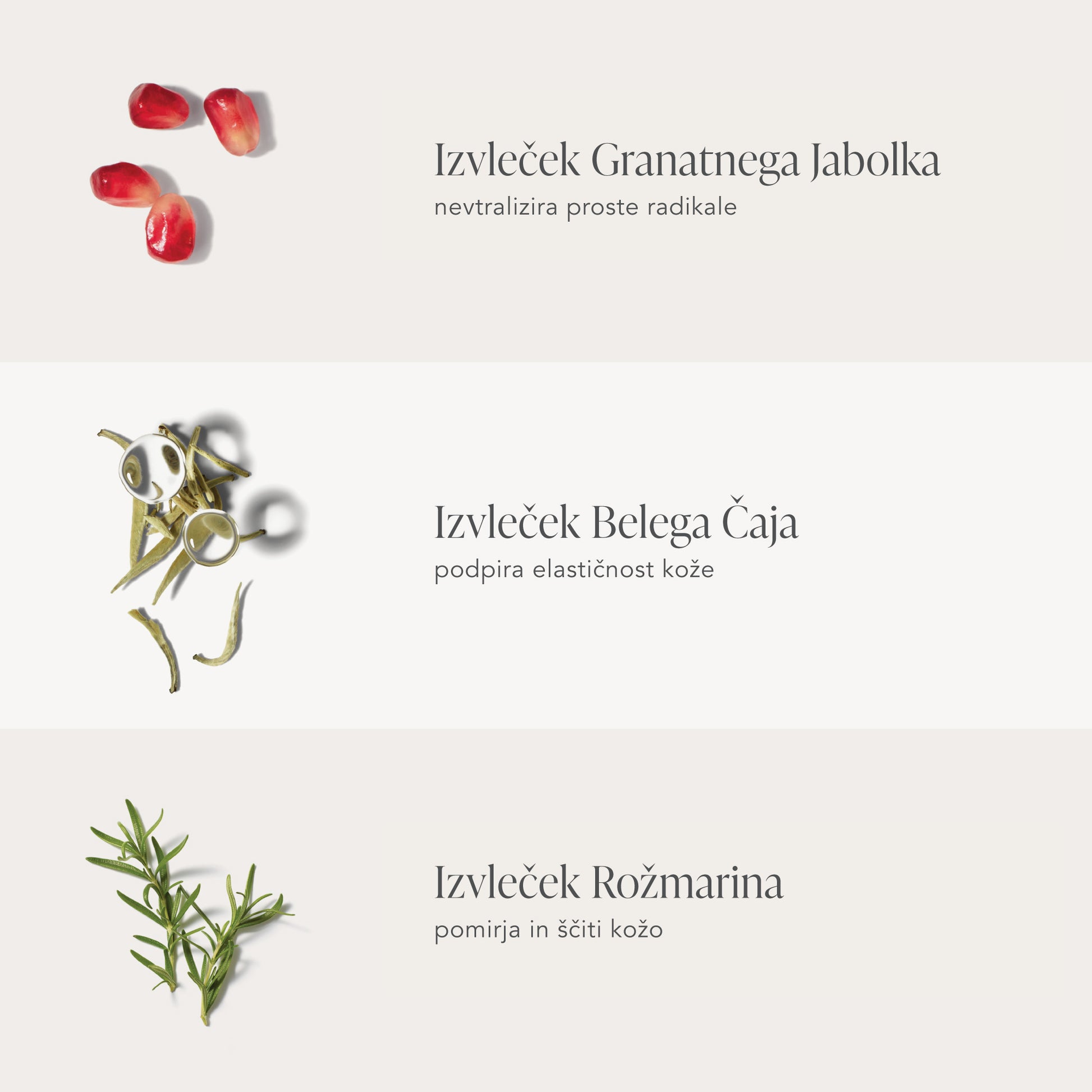 • Vlažilno pršilo z izvlečkom granatnega jabolka, ki je močan antioksidant.